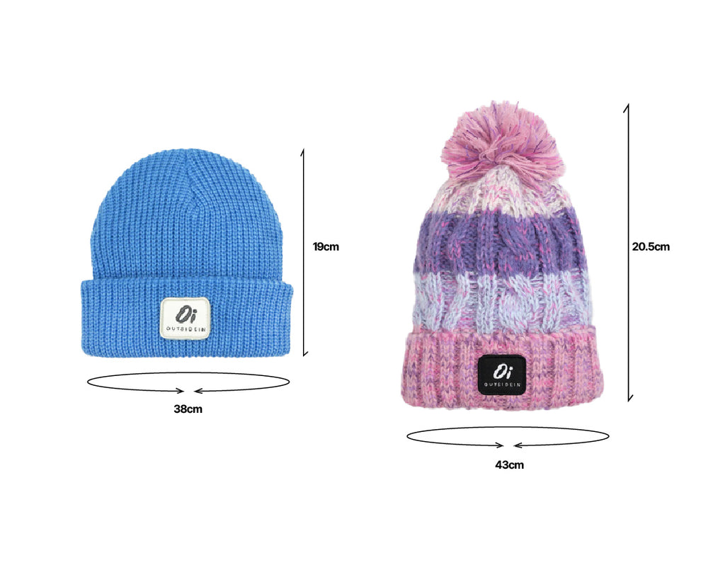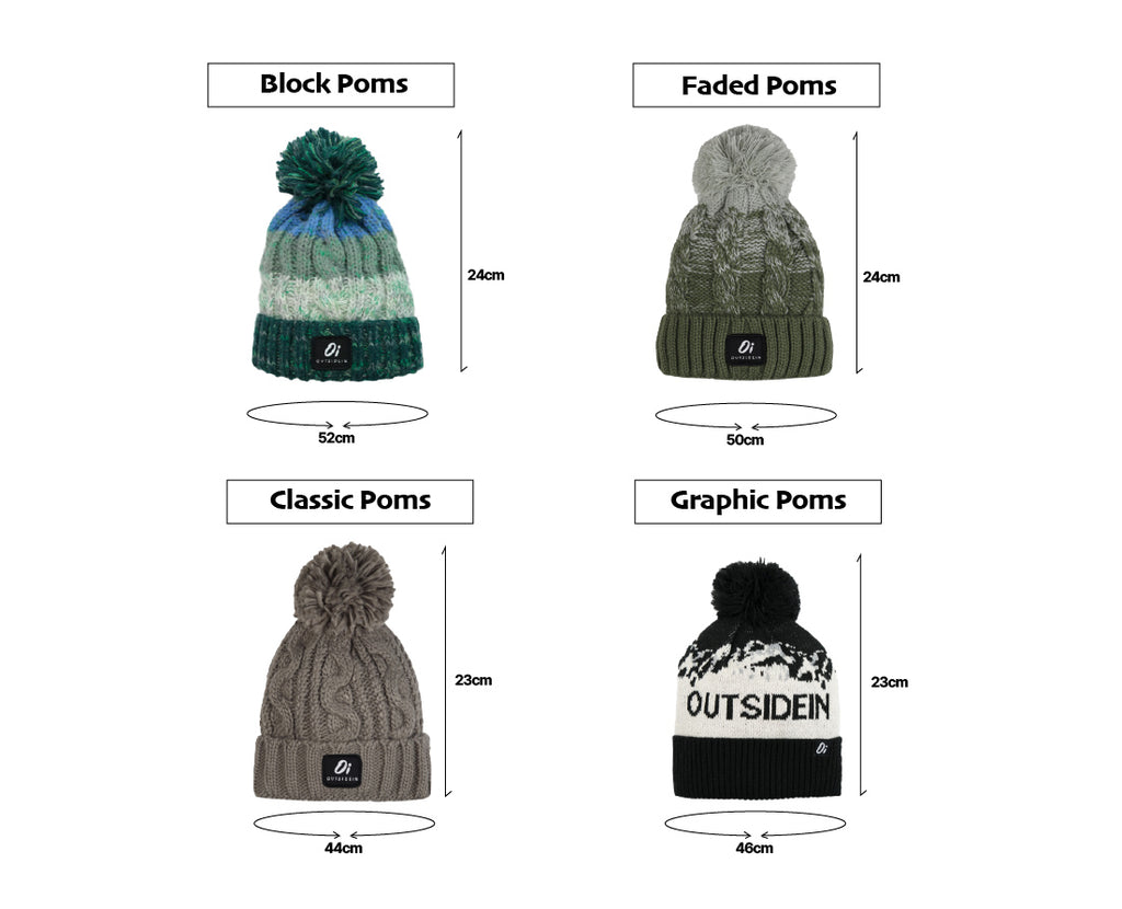 Our Kids Poms and Beanies offer a slightly smaller fit suitable for young-wearers.