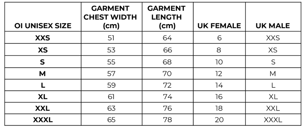 At OutsideIn, all of our clothing is designed with a unisex fit in mind. To ensure the best possible sizing variety, our sizes are based on Men’s XXS - 3XL.