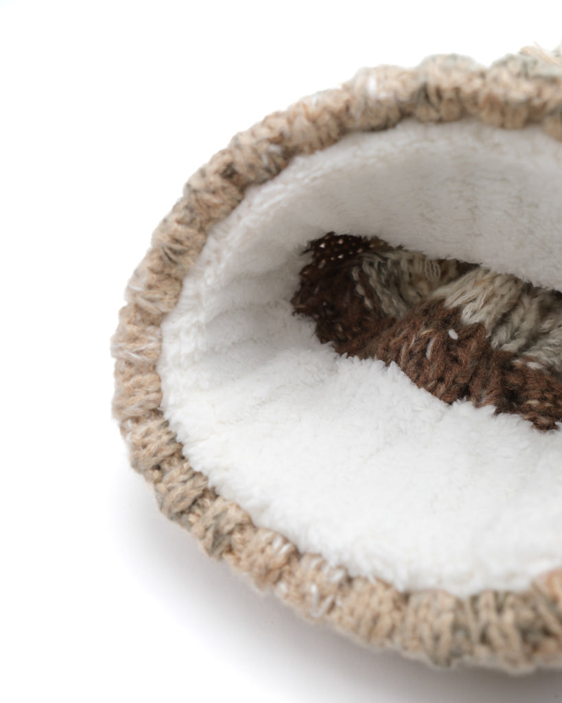 Crafted from a blend of acrylic and polyester yarn, this pom features a classic cable knit design and is topped off with an ultra-soft faux shearling band at the base for added warmth and comfort.