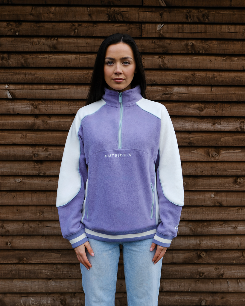 The Lavender Sports Fleece is a unique piece, featuring a soft microfleece body with jersey ribbed cuffs and hem for cosy comfort. Designed with a contrast half zip and branded zipper detail, it also includes zipper side pockets and signature OutsideIn embroidery for subtle, premium styling.