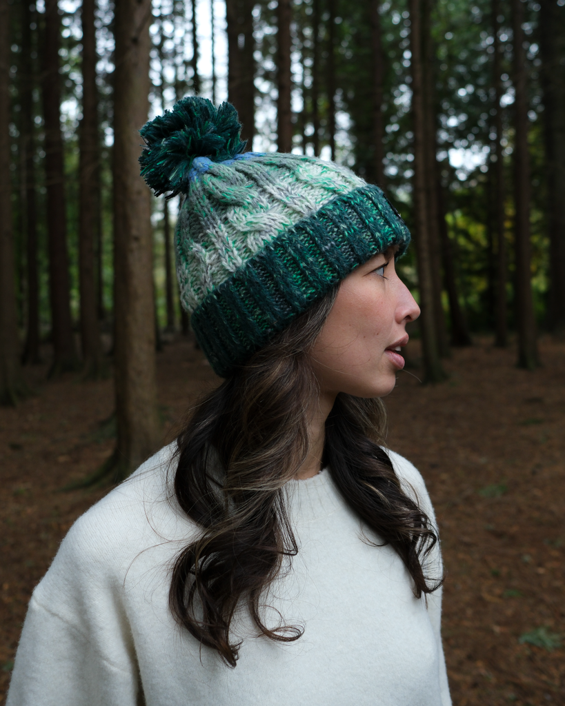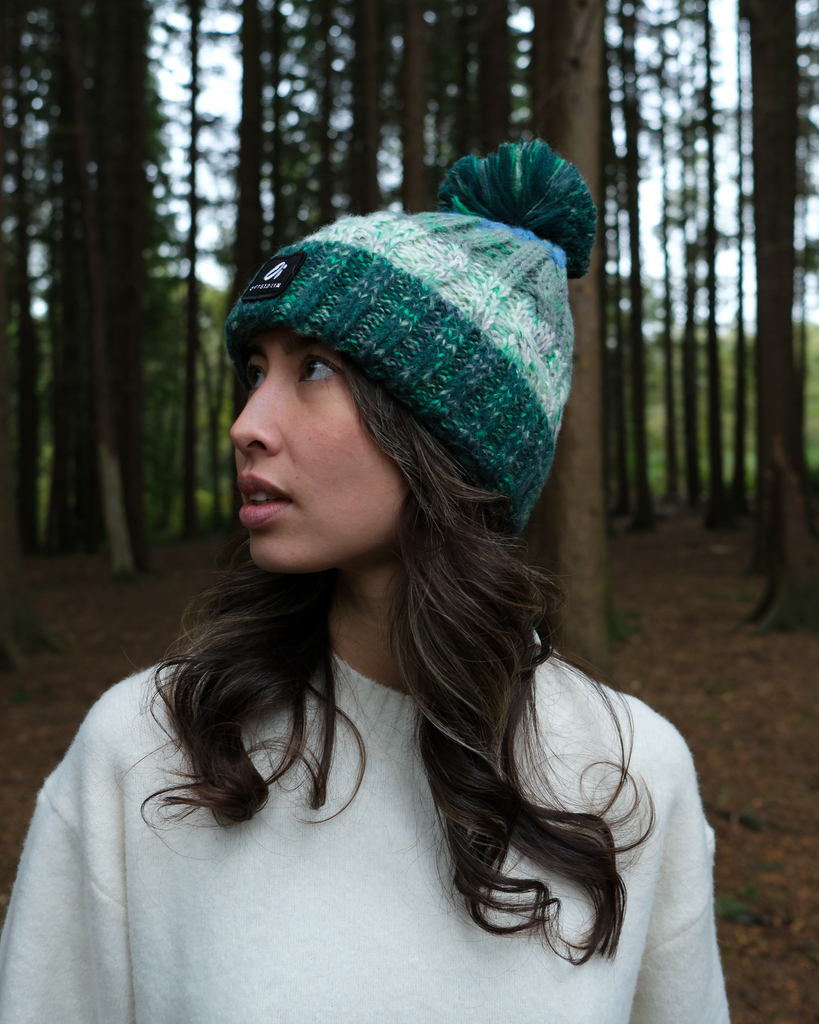 The Pine Forest Pom is built for crisp adventures, blending rugged warmth with natural tones.