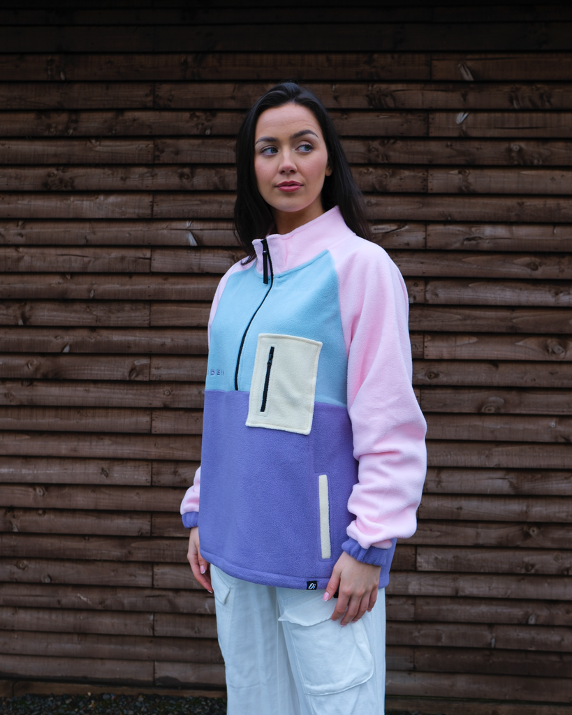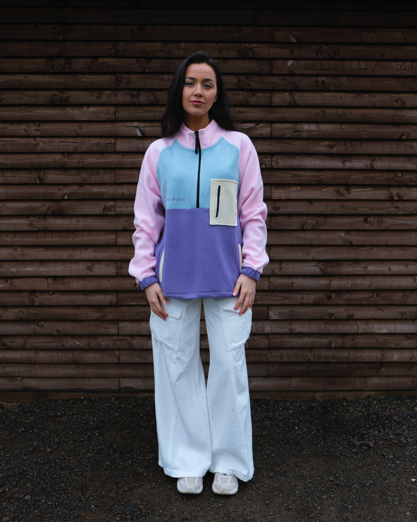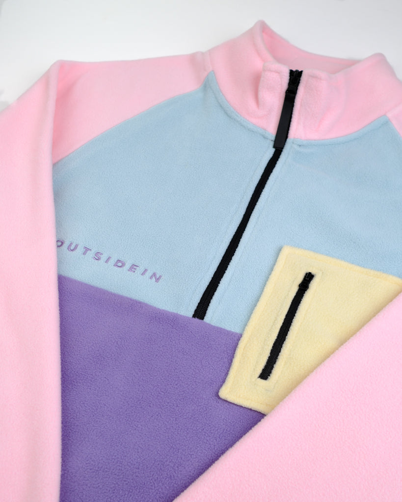 Finished with signature OutsideIn embroidery and contrast pastel panels inspired by flower petals and garden blooms, this fleece adds a soft pop of colour to any outfit.