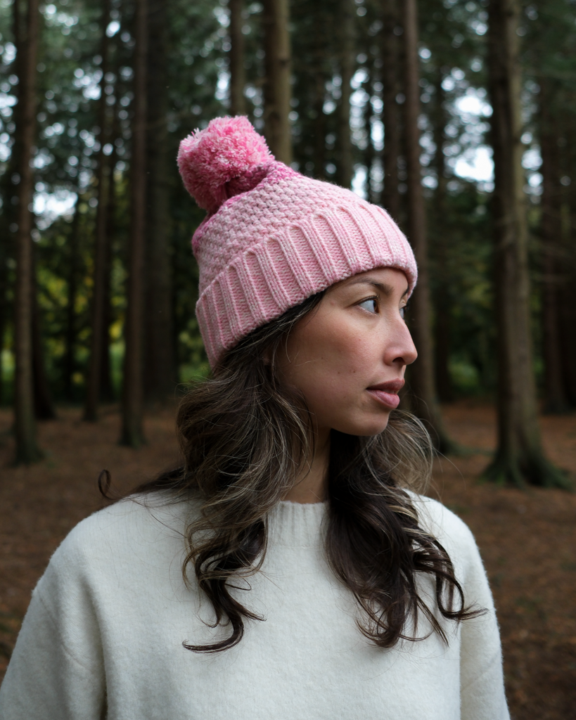 The Pink Gradient Pom is the perfect accessory for those seeking a cosy yet simple pom to embrace the cold. Made with 100% acrylic yarn and finished with an ultra-soft band of faux shearling lining at its base, it’s designed to keep you warm and comfortable all season long.