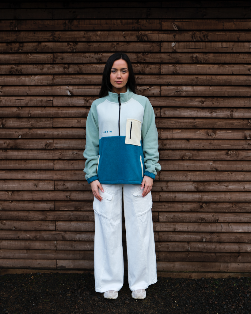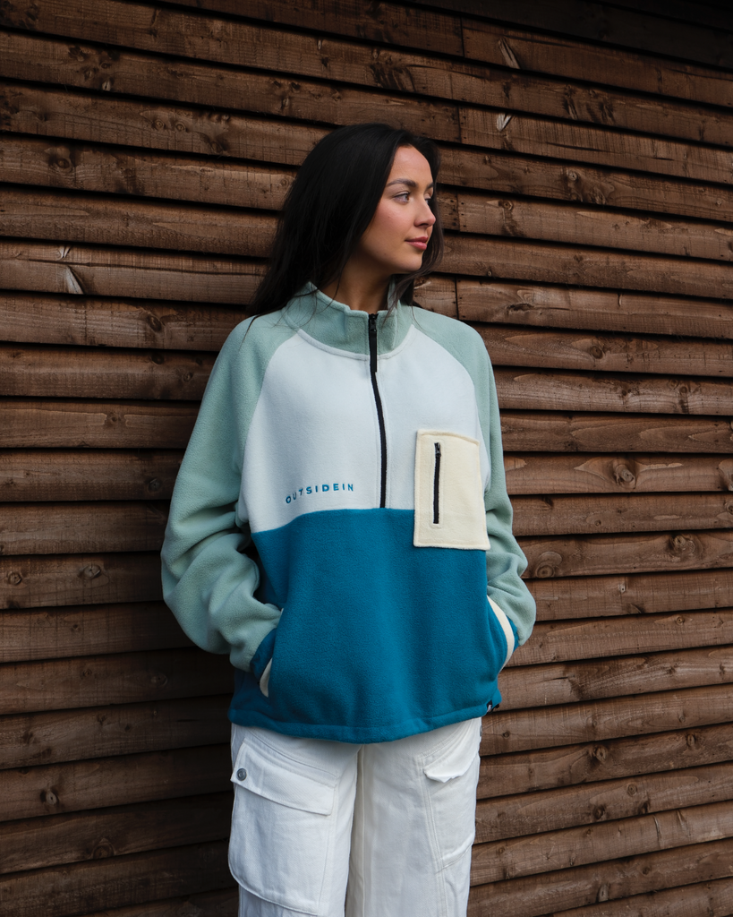 Finished with signature OutsideIn embroidery, this fleece draws inspiration from the soft pastel hues of sea mist rising along the shoreline. Calm, fresh, and effortlessly cool — it feels like the gentle breeze of a walk along Benone Beach.