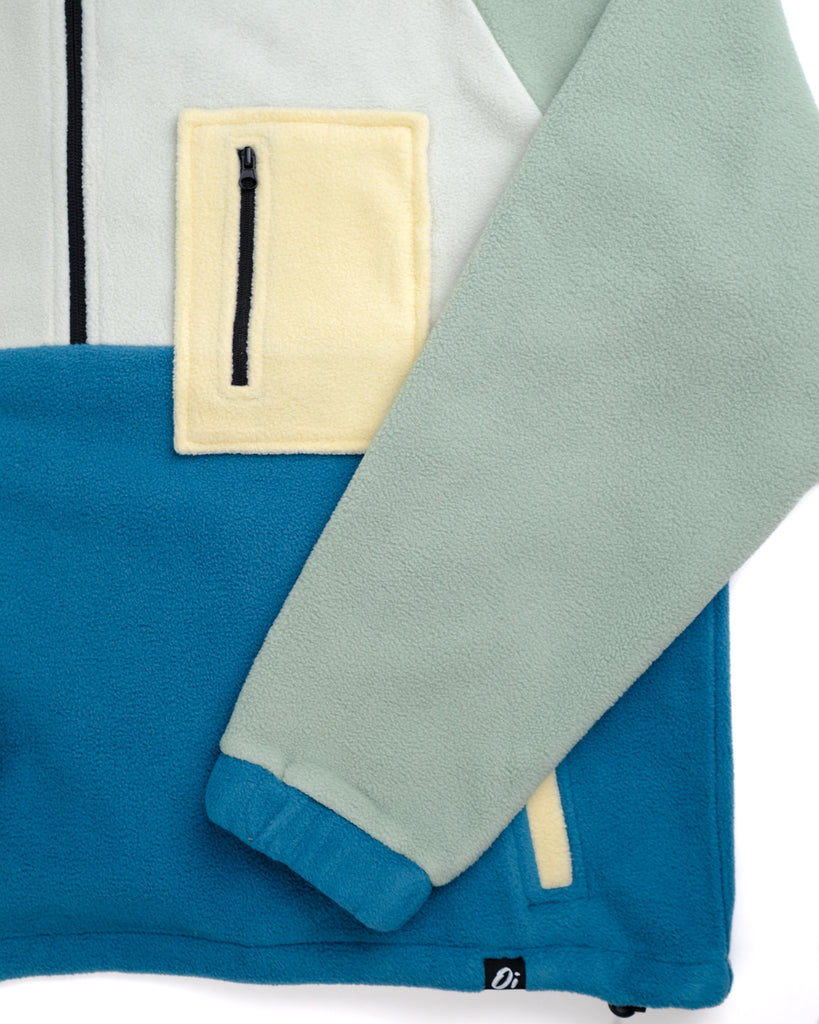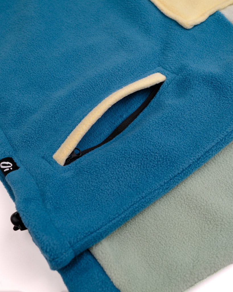 The Sea Mist Pocket Fleece combines timeless comfort with a coastal-inspired palette. Made from ultra-soft polar fleece, it features raglan sleeves for a relaxed oversized look and a practical half zip for everyday wear. Complete with zip side pockets, a secure chest pocket, and a toggle hem for adjustable comfort, it’s designed for both seaside strolls and city adventures.